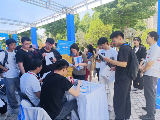 毕业生们在双选会现场的多家展位前,和信息技术、软件行业优质企业的HR、招聘人员们进行交流,了解企业招聘需求和现场招聘情况,纷纷向心仪企业投出简历。