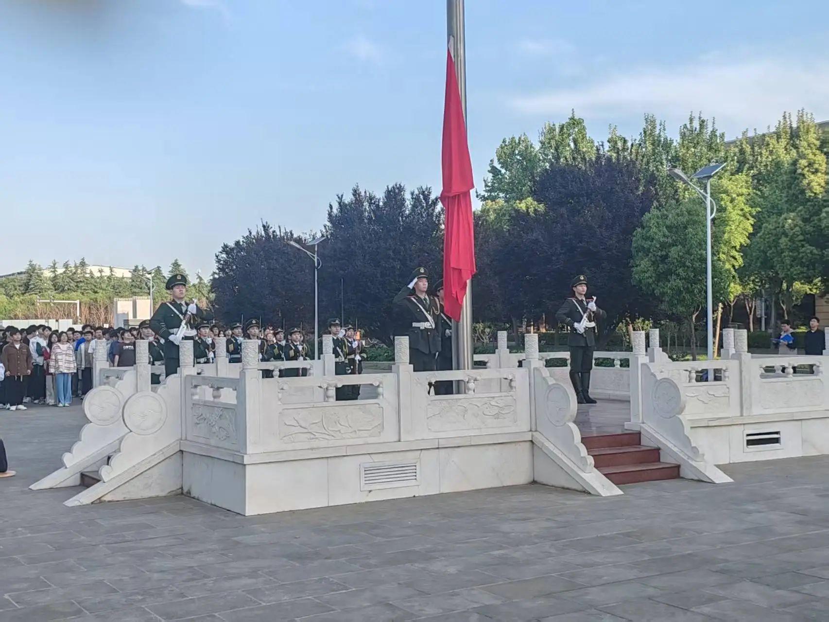 国旗飘扬,激扬青春使命7时整,升旗仪式正式开始。校国旗护卫队迈着铿锵步伐护送国旗入场,在嘹亮的国歌声中,五星红旗冉冉升起,全体师生肃立行注目礼,炽热的爱国情怀在晨光中激荡。