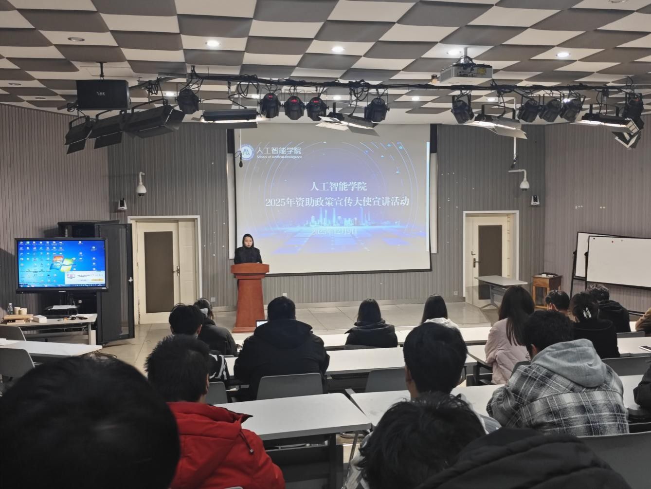 在国教楼102教室成功举办了2025年资助政策宣传大使宣讲活动。学院团委书记冯丽轩及全体新生参加了本次活动。