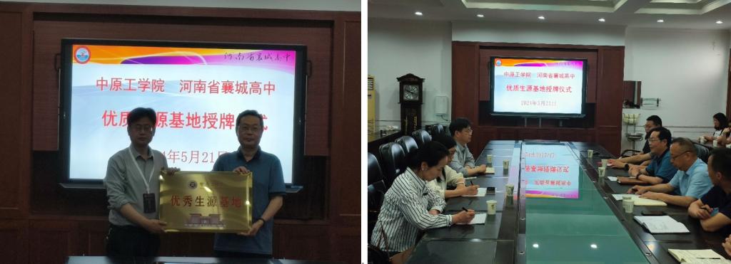 许昌襄城招生组另外走访了市级示范高中——襄城实验高级中学,与襄城实验高中党委书记宋晓鹏、校长单亚辉、副校长蒋双晓、程战桥、纪江浩、校纪工委书记何华等校领导和毕业班班主任代表进行座谈交流,就招生政策、生源基地建设、后续合作等进行了深入的沟通与交流和优质生源基地授牌。