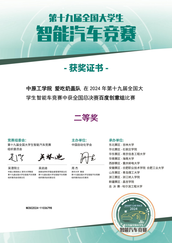 全国大学生智能汽车竞赛作为中国高等教育学会列出的所有学科中19个含金量最高的大学生学科竞赛之一,是教育部、财政部“质量工程”支持的国家级A类大学生学科和技能竞赛。竞赛内容综合性强,涵盖了控制、模式识别、传感技术、电子、电气、人工智能、机械、通信、汽车工程等多个学科知识,是一项以“立足培养、重在参与、鼓励探索、追求卓越”为理念,面向全国大学生开展的具有探索性的工程实践活动。本届大赛于2024年5月启动,共有来自全国9个赛区615所高校3165支队伍参加角逐。(通讯员张慎武)