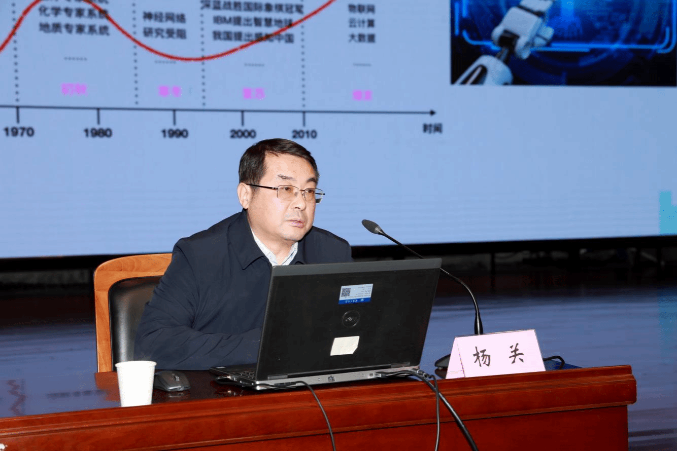 副院长杨关作专题报告,帮助干部更好把握人工智能发展趋势、提高科技应用素养。全体校领导、中层领导干部参加学习。党委书记贾少鑫主持会议。