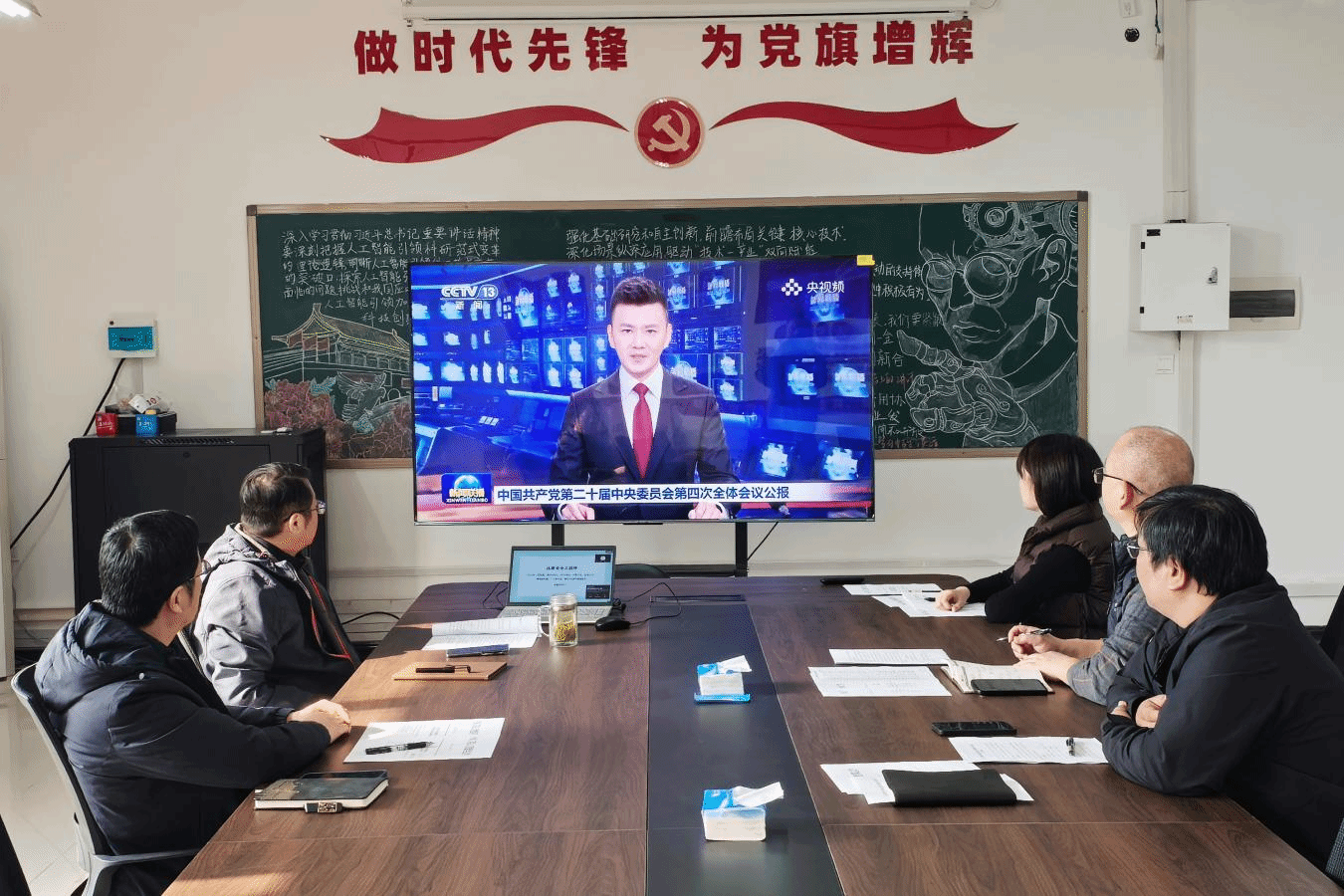 2025年11月3日, 偷拍 直属党支部理论学习中心组召开专题会议,深入学习贯彻党的二十届四中全会精神。会议由直属党支部副书记张志鹏主持,院长陈东义及全体中心组成员参加学习。